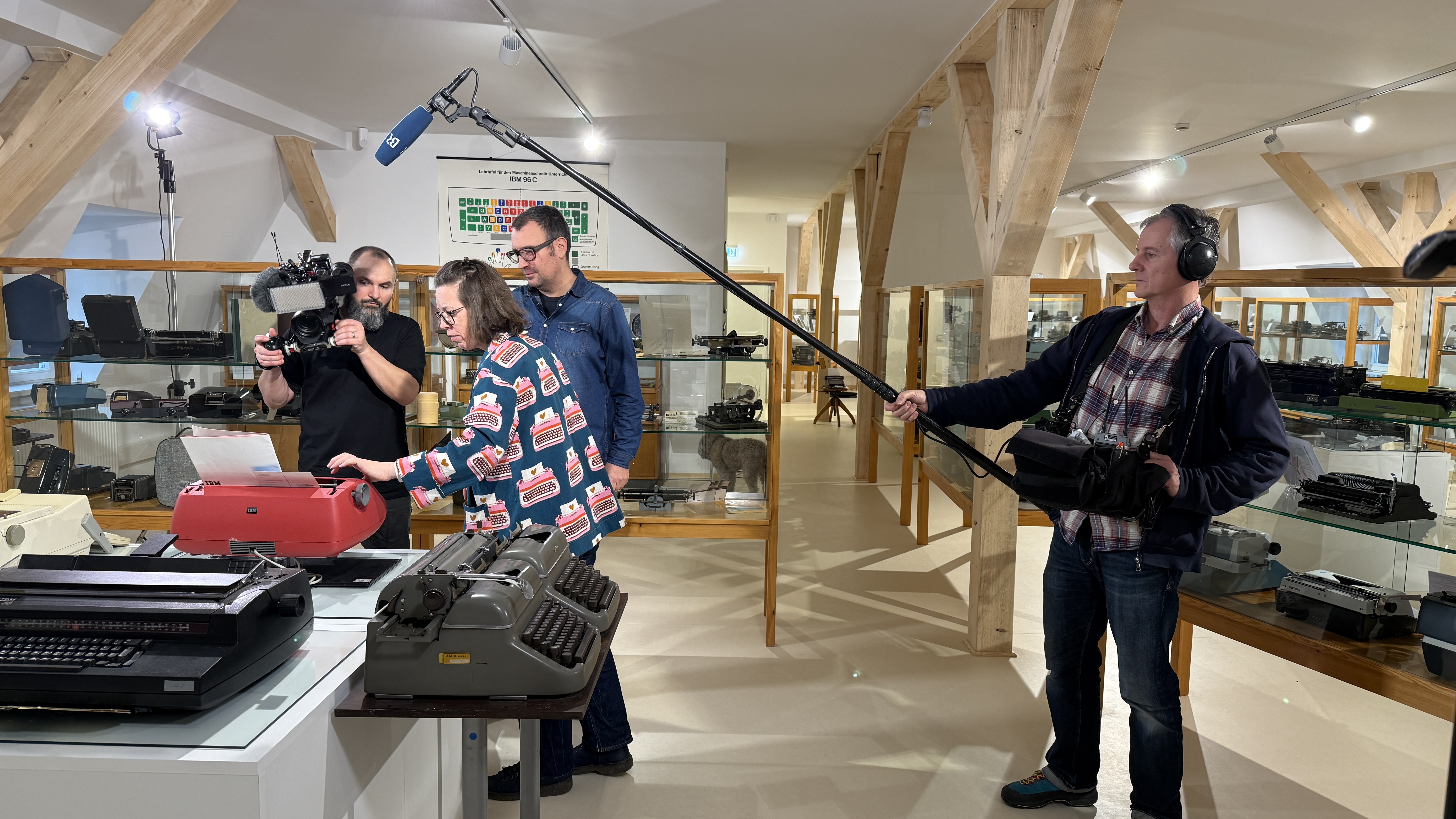 Diese Woche wurde ein Beitrag für eine baldige Ausgabe der Frankenschau (BR Fernsehen, sonntags 17:45 - 18:30) im Museum gedreht. Marc Neupert, Reporter beim BR, zusammen mit seinen Technik-Kollegen war 6 Stunden vor Ort mit Museumsleitung Alexandra Blum, Kollegin Angelika Wilfling sowie langjähriger Vereinsmitglied Helga Burger, um die Geschichte der Schreibmaschinen und den damit verbundenen Menschen einzufangen. Am nächsten Tag war das Fernsehteam bei Günter Pschibl, ehemaliger Museumsleiter und Schreibmaschinentechnikexperte, zu Besuch, um weiter zu drehen. Der Ausstrahlungstermin wird hier noch bekannt gegeben. Wir sind gespannt und freuen uns auf Resonanz!