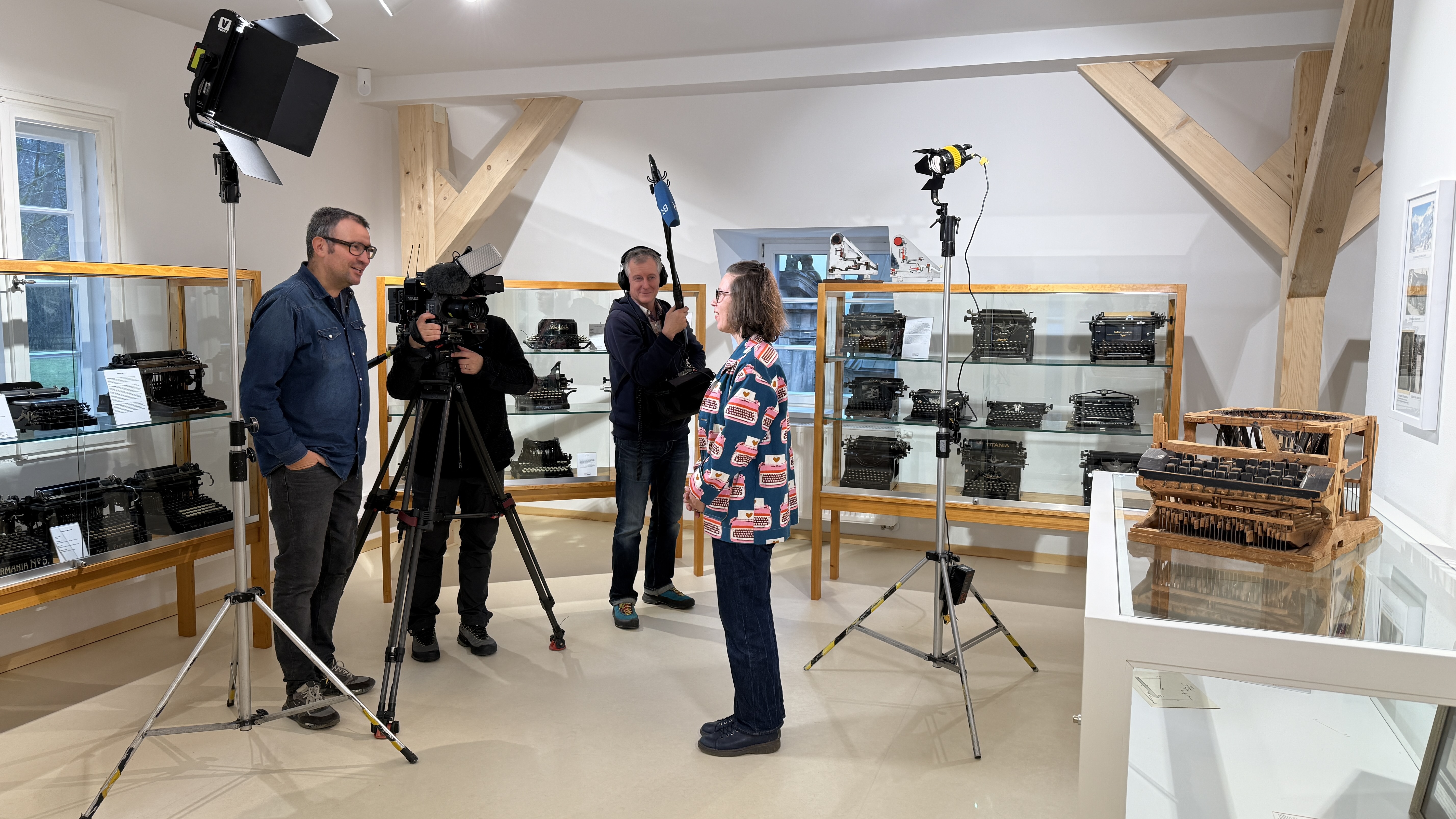 Diese Woche wurde ein Beitrag für eine baldige Ausgabe der Frankenschau (BR Fernsehen, sonntags 17:45 - 18:30) im Museum gedreht. Marc Neupert, Reporter beim BR, zusammen mit seinen Technik-Kollegen war 6 Stunden vor Ort mit Museumsleitung Alexandra Blum, Kollegin Angelika Wilfling sowie langjähriger Vereinsmitglied Helga Burger, um die Geschichte der Schreibmaschinen und den damit verbundenen Menschen einzufangen. Am nächsten Tag war das Fernsehteam bei Günter Pschibl, ehemaliger Museumsleiter und Schreibmaschinentechnikexperte, zu Besuch, um weiter zu drehen. Der Ausstrahlungstermin wird hier noch bekannt gegeben. Wir sind gespannt und freuen uns auf Resonanz!